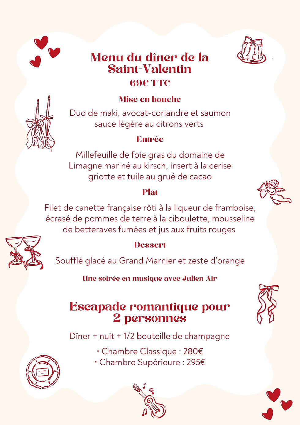 🍽️ Menu Saint-Valentin – 69€ TTC / personne